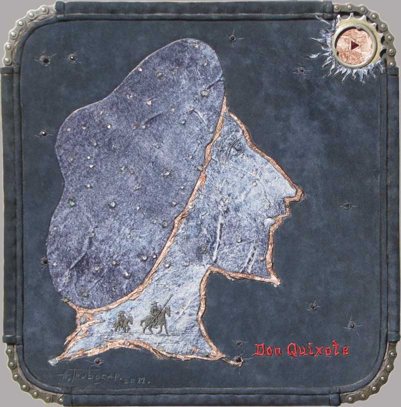 Під зоряним небом Ла-Манча. Шкіра, гранат, апатит, гірський кришталь. 39 x 38 см. |