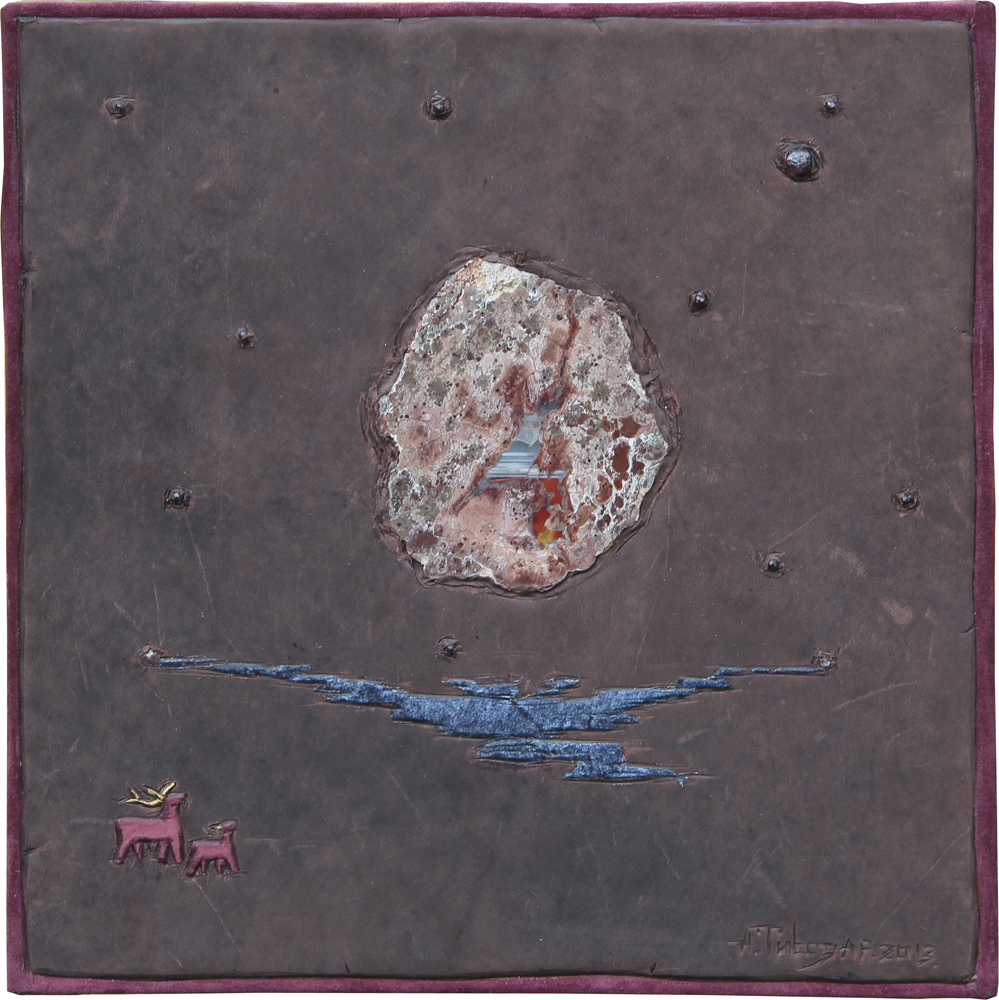 Leather, jasper agate, garnet.