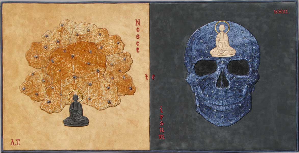 Сутра серця українского барокко. Шкіра, флюорит, апатит, гірський кришталь. 35 x 75 см. |